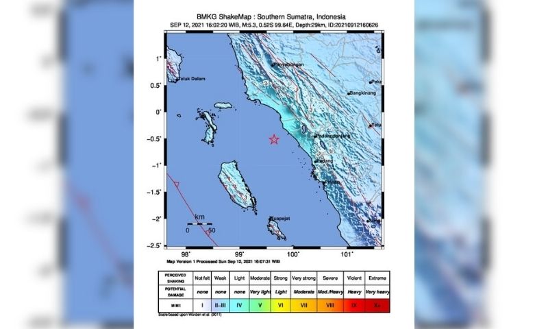 Suluah.com – Gempa bumi berkekuatan magnitudo (M) 5,2 mengguncang Kabupaten Agam, Sumatra Barat pada Minggu (12/9/2021) sore pukul 16:02 WIB.